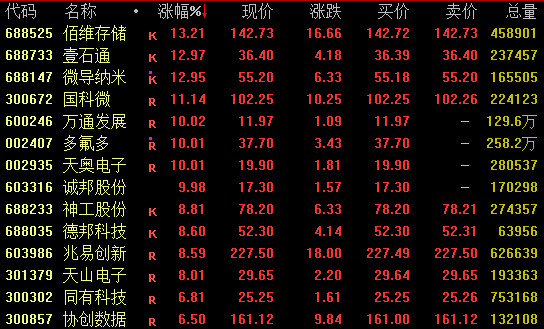存储芯片概念今日再度活跃,佰维存储收盘涨超13%,盘中一度逼近涨停突破150元大关,续创历史新高。此外,兆易创新涨超8%,盘中一度涨停;江波龙、普冉股份盘中均创出新高。